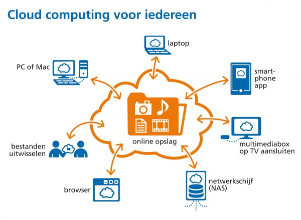 Je data online opslaan in een cloud heeft veel voordelen. Zoals we al zeiden kun je te allen tijde, vanuit waar dan ook, bij je bestanden in je cloud. Je bestanden staan immers niet op je laptop of computer, maar staan online, en daarom kun je ook vanaf bijvoorbeeld je tablet in bestanden die je vanaf je laptop hebt opgeslagen. Daarnaast is een cloud in eerste instantie gratis. Bij meer opslag moet je betalen, maar dat kun je doen zodra je ook echt meer opslagruimte nodig hebt. Je hoeft dus niet van tevoren te bepalen hoe groot je storage moet worden! Als laatste leent een cloud zich perfect als ‘openbare map’ voor als je in groepen samenwerkt. Via de cloud kunnen eenvoudig bestanden gedeeld worden.